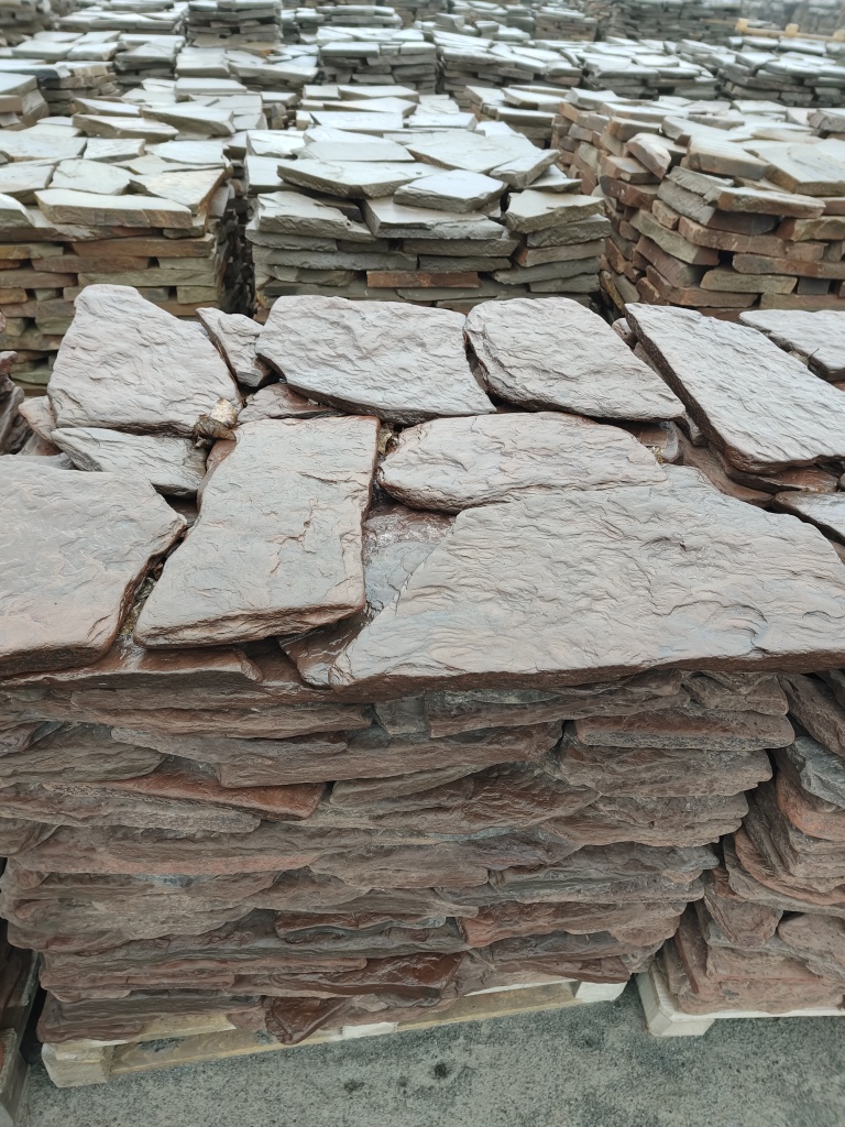 Плитняк песчаник дракон красный галтованный для облицовки цоколя, отмостки 20-35 мм